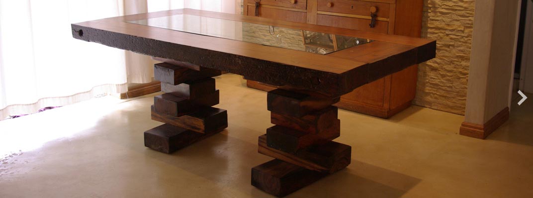 The raw, sturdy appearance of sleeper wood creates a beautiful contrast in the modern South African home. We create unique, eye-catching features that blend in perfectly with the earthy tones of our finishes. From tables to custom light fixtures, if you can dream it, we can create it.